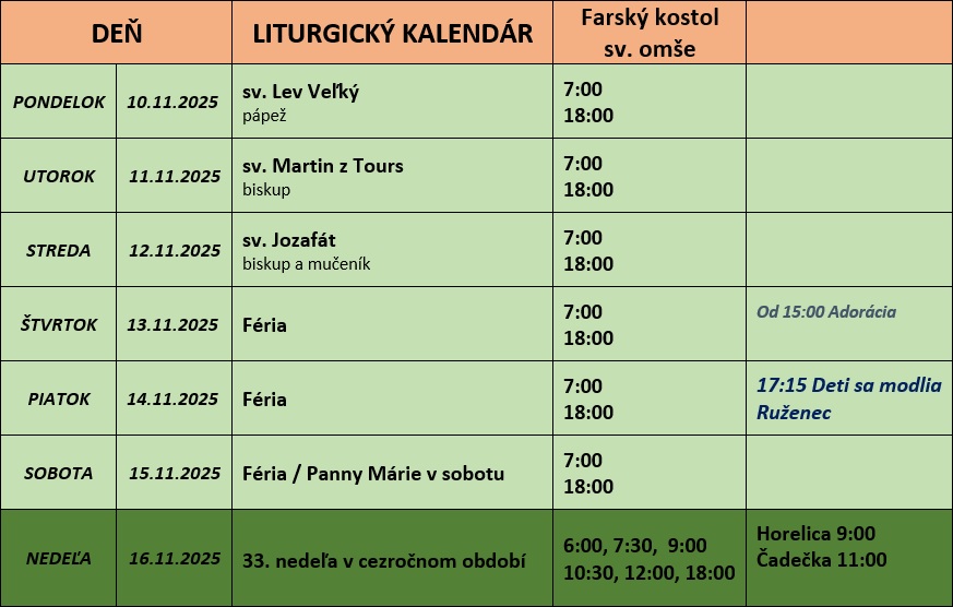Stretnutie birmovancov bude tento piatok 14.11.2025 po večernej sv. omši v Pastoračnom centre. Birmovancov pozývame aj na sv. omšu.